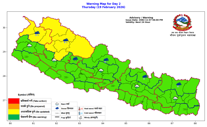 मौसम पूर्वानुमान : केही स्थानमा वर्षा र हिमपातको सम्भावना