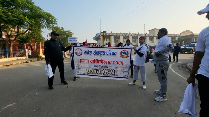 मधेश खेलकुद परिषदको प्रथम वार्षिकोत्सवको अवसरमा प्रभातफेरी